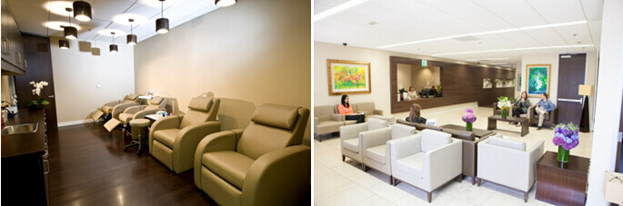 比弗利山莊癌癥中心(BHCC)輸液中心(左),門診大廳(右)