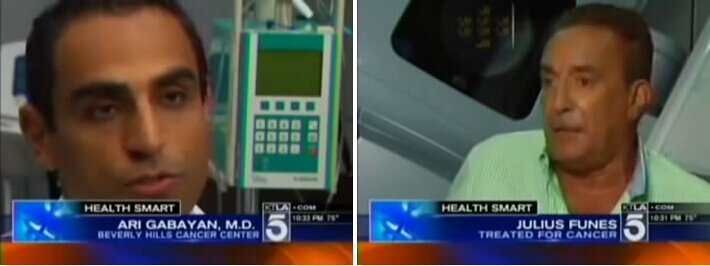 美國(guó)KTLA5電視臺(tái)報(bào)道Dr.AriGabayan(左)采用先進(jìn)放射療法治愈前列腺癌患者Julius Funes(右)