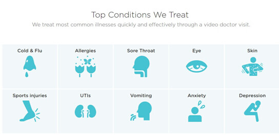 “MDLIVE”2009年成立于佛羅里達州,截至目前已經(jīng)融資7360萬美元,致力于為超過2200萬人提供虛擬健康醫(yī)療服務(wù),你只需在智能手機上下載這個應(yīng)用程序并注冊即可。支付49美元15分鐘后,你就可以通過一個虛擬身份訪問具有職業(yè)資格認(rèn)證的醫(yī)生,解決下述疾病問題: