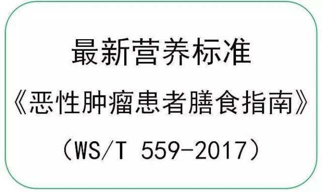 2017年8月1日,國家衛(wèi)生計生委發(fā)布了《惡性腫瘤患者膳食指導(dǎo)(Dietary guide for cancerpatients)》,中華人民共和國衛(wèi)生行業(yè)標(biāo)準(zhǔn)編號是WS/T559-2017。該項標(biāo)準(zhǔn)規(guī)定了成人惡性腫瘤患者膳食指導(dǎo)原則、能量和營養(yǎng)素推薦攝入量、食物選擇,將于2018年2月1日起施行。