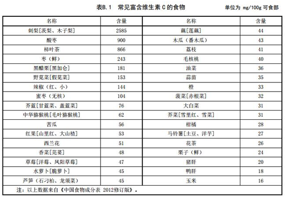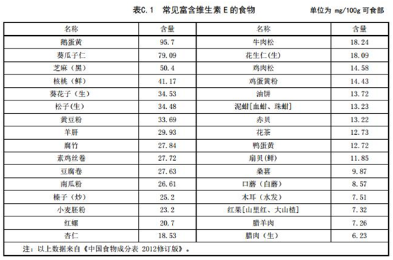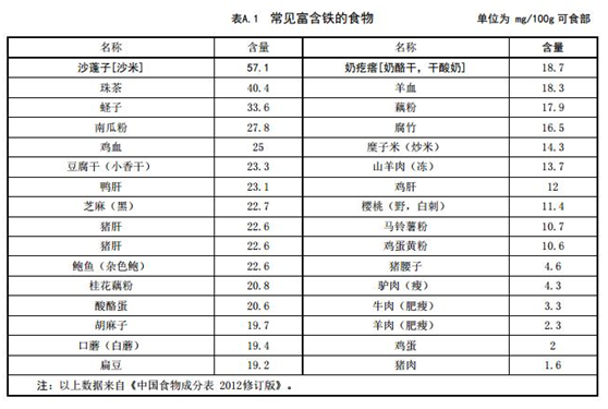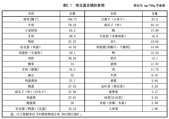 在這份國標(biāo)中,還給出了富含鐵、維生素、硒等食物列表,如下: