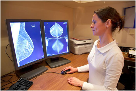 醫(yī)生操作乳腺鉬靶X線放射儀器,查看、是否有乳腺癌或其他乳房異常情況(圖片來自medicalnewstoday.com)