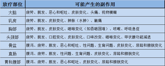 輻射不僅能殺死或減緩癌細(xì)胞的生長(zhǎng),還會(huì)影響附近的健康細(xì)胞。對(duì)健康細(xì)胞的損害,則會(huì)引起副作用。這些副作用一定程度上取決于身體接受治療的部位,具體如下: