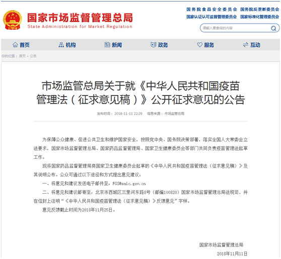 舉國(guó)震驚的“長(zhǎng)生生物疫苗案”過去不到4個(gè)月,在其推動(dòng)下,11月11日,國(guó)家市場(chǎng)監(jiān)管總局網(wǎng)站發(fā)布《中華人民共和國(guó)疫苗管理法(征求意見稿)》,卻在“雙11”購(gòu)物狂歡潮中并未泛起太大波瀾。