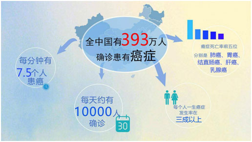 報告顯示,2015年全國惡性腫瘤發(fā)病約392.9萬人,較2014年的380.4萬增加12.5萬,增長率為3.2%;這意味著,平均每天超過1萬人被確診為癌癥,每分鐘有7.5人被確診為癌癥。隨著惡性腫瘤發(fā)病數(shù)持續(xù)上升,我國每年所需的相關(guān)醫(yī)療花費超過2200億元。