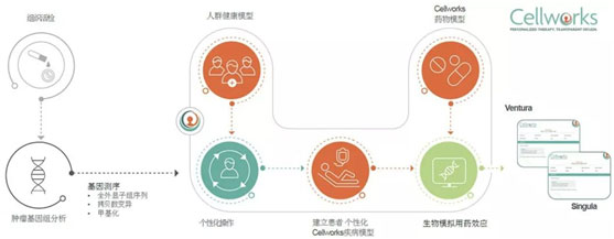 而Cellworks TRI檢測,可根據(jù)膠質(zhì)母細(xì)胞瘤等多種癌癥患者的基因測序信息,使用生物模擬技術(shù),建立生物模擬“疾病模型”。通過不斷組合藥物模型數(shù)據(jù)庫中FDA批準(zhǔn)藥物,生物模擬這些藥物組合對患者疾病模型的效果,基于表型作用,預(yù)測出最有效的藥物組合。
