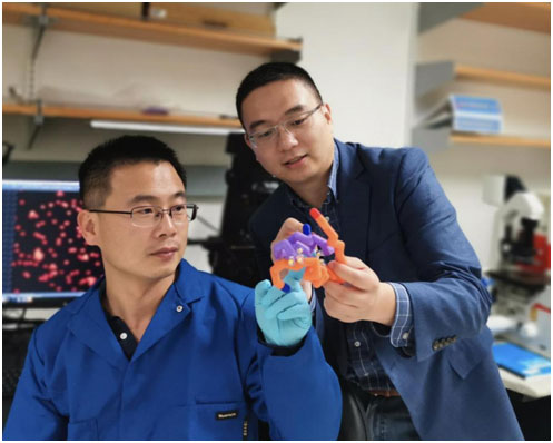 研究作者王金強(qiáng)博士(左)和顧臻教授(右)正在使用胰島素模型