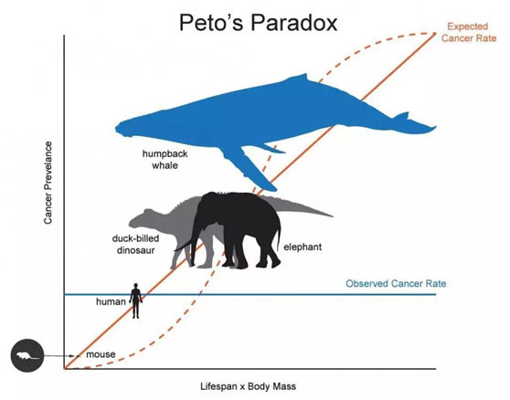 然而,這些規(guī)律并不適用于所有物種。有些動物甚至可能不會患上癌癥,盡管它們體型龐大、壽命很長。