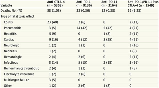免疫檢查點抑制劑相關死亡的發(fā)生率和類型(圖片來源researchgate.net)