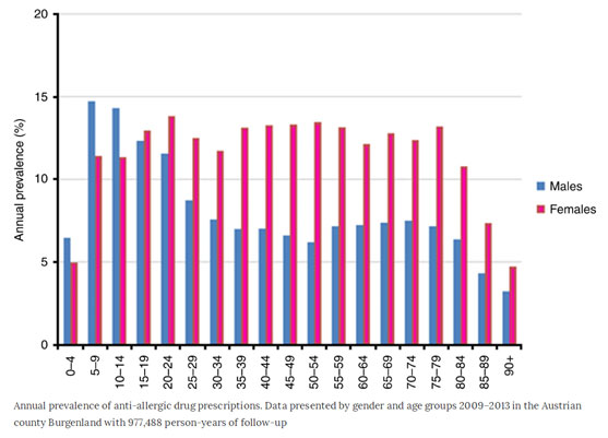 研究人員調(diào)查了包括任何抗胃酸藥物的處方(如PPIs、硫酸鋁、H2受體拮抗劑或前列腺素E2)以及任何抗過敏藥物的處方(如抗組胺或特異性過敏原免疫療法)。結(jié)果發(fā)現(xiàn),那些使用胃酸抑制劑的患者和沒有使用的人相比,后續(xù)服用抗過敏藥的概率幾乎是其兩倍。在澳大利亞區(qū)域數(shù)字集中,這一比例甚至高達三倍以上。女性的比率高于男性。