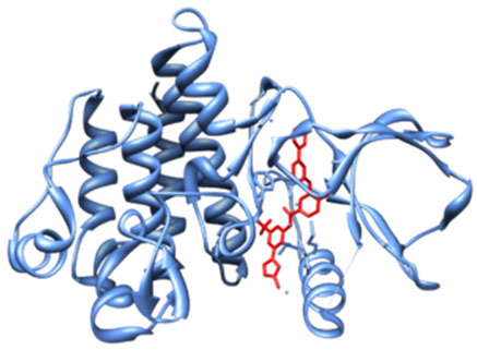使NSCLC對奧希替尼及其類似物產(chǎn)生耐藥性的突變都改變了EGFR蛋白的結(jié)合位點。一種與另一個不受影響的位點結(jié)合的藥物可能提供一種減緩或預(yù)防耐藥性的方法。該位點被稱為別構(gòu)位點,占據(jù)EGFR蛋白的單獨部分,并作為該蛋白活性的一個二級開關(guān)。