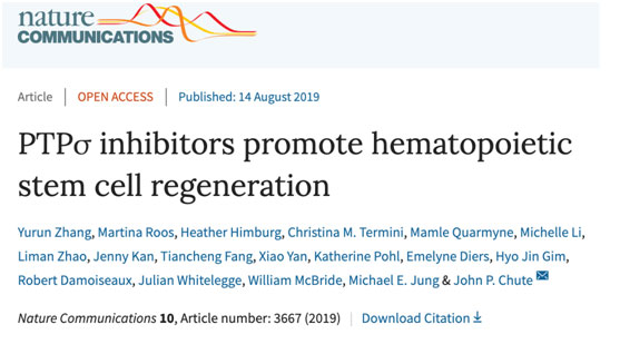 化療和放療通常抑制造血干細胞的活性,血液和免疫系統(tǒng)通常需要數(shù)周或數(shù)月才能恢復。2014年,Chute和他的同事發(fā)現(xiàn),PTP-sigma也存在于血液干細胞中,其在血液干細胞中的作用與在神經(jīng)元中的作用相似。在那項研究中科學家發(fā)現(xiàn),PTP-sigma基因缺失的小鼠在受到輻射干擾后的造血干細胞再生速度更快。