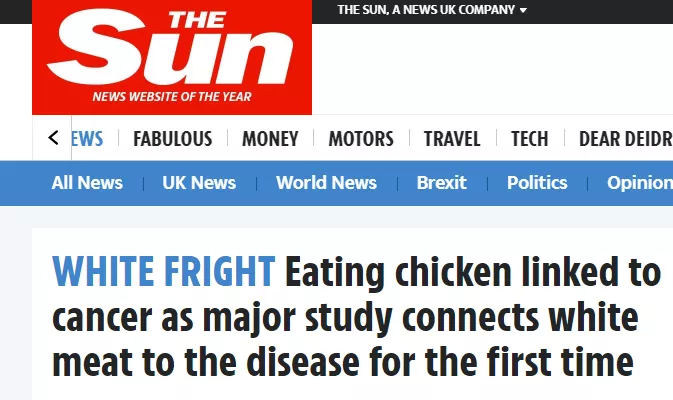 對食用雞肉與較高的患癌風險產生關聯,有醫(yī)生稱“這項研究只是顯示了一種關聯。它并沒有顯示出雞肉導致癌癥的機制。在這個階段,我不會擔心。”