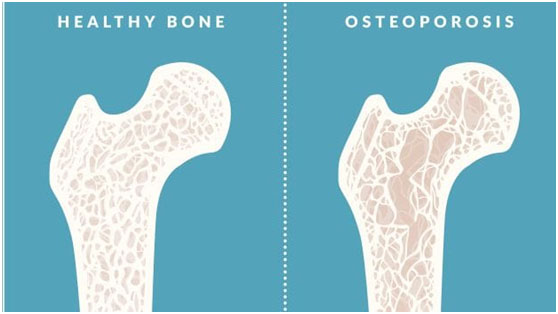 健康骨頭(左)和骨質(zhì)疏松(右)