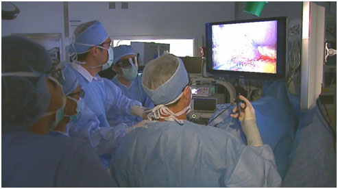 與需要大切口才能進(jìn)入肝臟的開(kāi)腹手術(shù)不同,腹腔鏡手術(shù)是將手術(shù)工具和攝像頭從活體供體腹部的幾個(gè)半英寸的洞中插入。等到肝臟被切開(kāi),再通過(guò)肚臍下的小切口取出移植物。