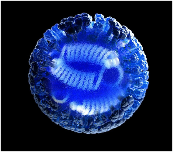 電腦生成的3D流感病毒效果圖(來(lái)源CDC)
