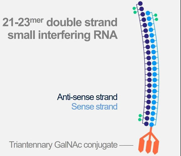 作為第一款降低LDL-C的RNAi療法,Inclisiran可與編碼PCSK9蛋白的mRNA結(jié)合,通過RNA干擾作用降低mRNA的水平、阻止肝臟產(chǎn)生PCSK9蛋白,從而增強肝臟從血液中清除LDL-C的能力,實現(xiàn)降低LDL-C水平的目的。