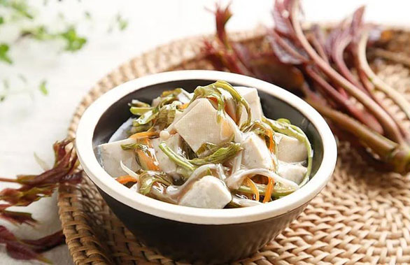香椿在我國有悠久的食用歷史,是傳統(tǒng)的優(yōu)質(zhì)木本野菜,傳說漢朝時(shí)期更是與荔枝一起作為南北兩大貢品,深受皇族喜愛。且其營養(yǎng)豐富,據(jù)分析,每100克香椿中,含蛋白質(zhì)9.8克、鈣143毫克、維生素C 115毫克,均列蔬菜前茅。此外,還富含磷、胡蘿卜素、鐵、B族維生素等營養(yǎng)元素。
