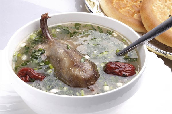 白鴿1只,海帶30克,夏枯草15克,調(diào)料適量。先將白鴿去毛、內(nèi)臟、腳爪,洗凈切開;夏枯草洗凈切段;海帶浸泡后洗凈切絲。然后把夏枯草放入沙鍋內(nèi),加水適量,武火煮沸后,再改用文火煮30分鐘,去渣取汁,在汁液中加入白鴿、海帶,再煮1小時,放入食鹽、味精調(diào)味后即可。吃肉喝湯,每晚1次,每次1碗。