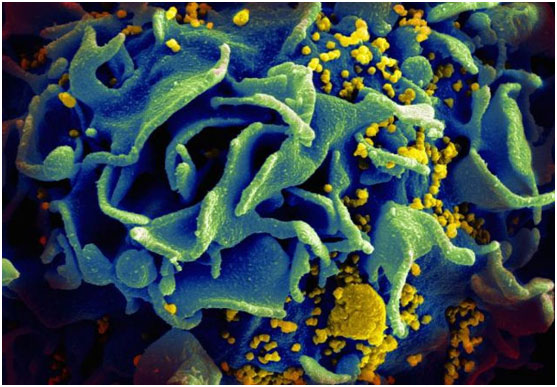 HIV感染T細胞的掃描電鏡圖.NIAID