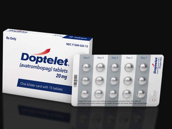 2019年7月,美國(guó)FDA批準(zhǔn)Doptelet(Avatrombopag)擴(kuò)大適應(yīng)癥,用于對(duì)前期治療反應(yīng)不足的慢性免疫性血小板減少癥(ITP)成人患者。該藥是第二代、每日一次的首個(gè)口服血小板生成素(TPO)受體激動(dòng)劑。