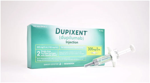 Dupixent最初被批準(zhǔn)用于濕疹。2017年,F(xiàn)DA批準(zhǔn)Dupixent用于12歲及以上、局部治療進(jìn)展或無(wú)可用治療方案的濕疹患者。2018年,Dupixent擴(kuò)大適應(yīng)癥,被批準(zhǔn)為12歲及以上中度至重度嗜酸性粒細(xì)胞性哮喘或口服皮質(zhì)類固醇依賴性哮喘患者的附加維持治療。