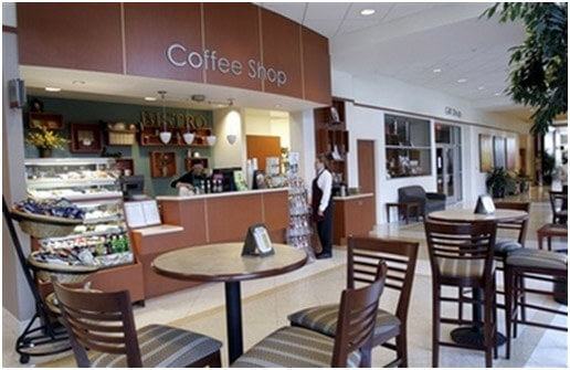 非醫(yī)療功能的社會化服務空間在美國醫(yī)院中較為普遍,如公共開放的餐廳、咖啡廳、零售、圖書室、活動室等。這些多元化服務設施的出現(xiàn)不僅為患者及其家屬提供了方便,而且使在院期間的氛圍變得輕松愜意。家屬可以足不出院,更多陪伴患者從事各種休閑活動,有利于其在治療過程中保持身心愉悅。