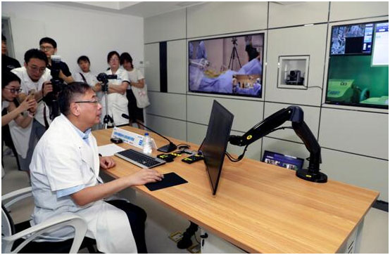 北京積水潭醫(yī)院田偉院長在機(jī)器人遠(yuǎn)程手術(shù)中心,通過遠(yuǎn)程系統(tǒng)控制平臺(tái)與嘉興和煙臺(tái)的兩家醫(yī)院同時(shí)連接成功。此次手術(shù)借助中國電信5G網(wǎng)絡(luò)和華為通信技術(shù)支持,標(biāo)志著我國5G遠(yuǎn)程醫(yī)療與人工智能應(yīng)用達(dá)到了新高度。