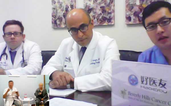 Y老先生在主診醫(yī)生陪同下,遠(yuǎn)程視頻連線Dr.Gabayan和Dr.Berz(好醫(yī)友美國專業(yè)醫(yī)療翻譯在旁協(xié)助)