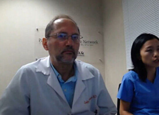 L女士家人在好醫(yī)友衛(wèi)星診所醫(yī)生的協(xié)助下與Dr. Carabulea進(jìn)行視頻交流