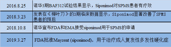 Mayzent獲批的適應(yīng)癥包括CIS、RRMS、SPMS。值得一提的是,這是目前第一種也是唯一一種能有效延緩典型SPMS患者殘疾進展的藥物。