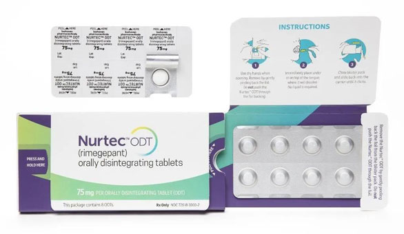 Nurtec ODT(Rimegepant,75mg,口腔崩解片)于今年2月被FDA批準(zhǔn)用于成人偏頭痛的急性治療。