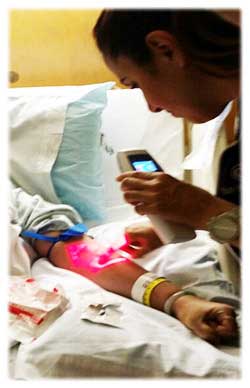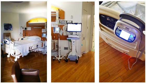 迷糊中似乎我被推入了手術(shù)室,手術(shù)過(guò)程我自然一無(wú)所知。手術(shù)是在下午兩點(diǎn)半結(jié)束的。David Alessi博士從手術(shù)室出來(lái)后,告訴家人我的手術(shù)十分順利,也沒(méi)有發(fā)現(xiàn)癌細(xì)胞擴(kuò)散。真是謝天謝地!14:50分我被送入術(shù)后觀察室,19:45分送入病 房。這里的病房寧?kù)o而溫馨,我看著天花板上的藍(lán)天白云燈,心里很平靜。病床上還安裝了電子監(jiān)控設(shè)備,床邊也立了一個(gè)大家伙,實(shí)時(shí)監(jiān)控。床體本身還帶有輔助 運(yùn)動(dòng)的功能,躺累了,沒(méi)事動(dòng)一動(dòng),還能幫助保持肌肉活性。