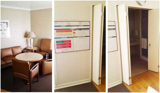 病房全景:病床+監(jiān)控電腦+床頭監(jiān)控器+沙發(fā)+病情記錄板+衛(wèi)生間