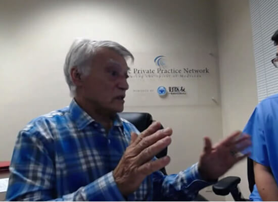 L女士及其主治醫(yī)生與Dr. Oliai醫(yī)生進行遠程視頻交流