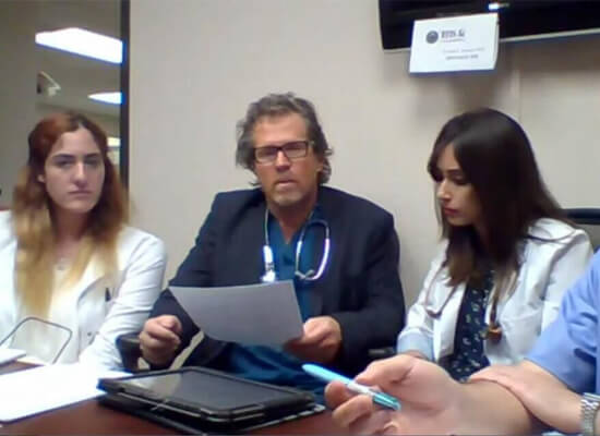 H先生在主診醫(yī)生陪同下與Dr.Ernst.Schwarz.M.D.遠程視頻交流