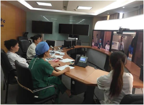 L先生的主治醫(yī)生及其他眼科醫(yī)生正在與Dr.Vaidya進(jìn)行視屏咨詢探討