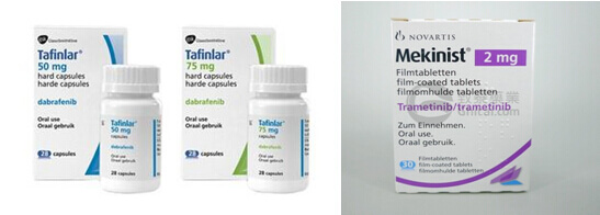 其實(shí),最開始,Dabrafenib(BRAF抑制劑)和Trametinib(MEK抑制劑)是研發(fā)用于治療腫瘤組織內(nèi)存在BRAF V600E/V600K基因突變的轉(zhuǎn)移性或手術(shù)不可切除性黑色素瘤的靶向藥物。相比傳統(tǒng)化療,這兩款藥物的組合使用可對(duì)黑色素瘤產(chǎn)生更加有效和持久的治療作用,在延緩癌細(xì)胞擴(kuò)散、提高患者存活率等方面具有明顯優(yōu)勢(shì),并已于2013年5月獲FDA批準(zhǔn)上市。