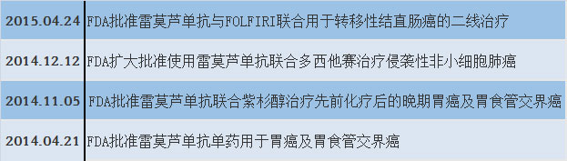 早在2014年12月,F(xiàn)DA已批準(zhǔn)雷莫蘆單抗聯(lián)合多西他賽用于含鉑化療期間或治療后進(jìn)展的轉(zhuǎn)移性非小細(xì)胞肺癌患者。同時(shí)還規(guī)定,EGFR或 ALK異常的患者應(yīng)在服用雷莫蘆單抗之前先要接受FDA批準(zhǔn)的針對(duì)性藥物治療。