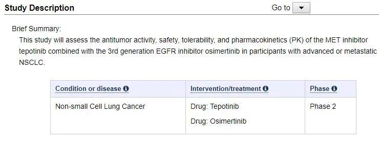 另外,在一項名為INSIGHT 2(NCT03940703)的臨床研究中,研究人員正在評估Tepotinib與第三代EGFR TKI奧希替尼(泰瑞沙)聯(lián)用,治療存在獲得性耐藥的EGFR突變、MET擴(kuò)增、局部晚期或轉(zhuǎn)移性NSCLC患者。