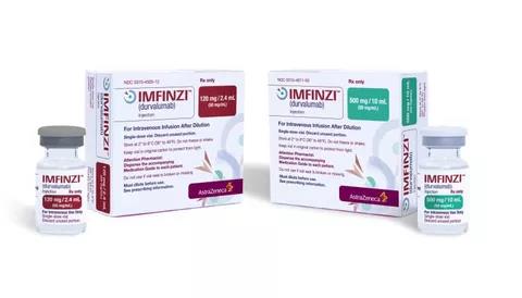 度伐利尤單抗(商品名:英飛凡Imfinzi,即“I藥”),是一種PD-L1抑制劑,通過阻斷PD-L1與PD-1和CD80的相互作用,從而應(yīng)對抗腫瘤的免疫逃逸,激活免疫應(yīng)答,殺死腫瘤。