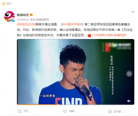 據(jù)媒體報(bào)道,曾獲《中國(guó)好聲音第二季》全國(guó)亞軍的歌手張恒遠(yuǎn)因罹患黑色素瘤去世,年僅37歲。 正值壯年的歌手,被癌癥奪走生命,實(shí)在令人惋惜。他的...