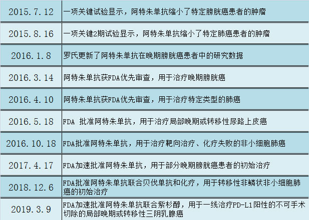 阿特朱單抗的獲批史(2016年5.18首次批準)